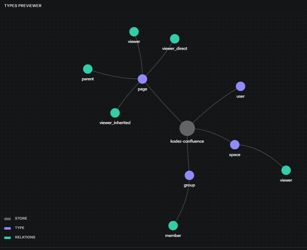 define viewer_inherited: viewer from parentparent: [space] -: A page has a parent space.viewer_direct: [user, group#member] -: A page can be viewed directly by a user or a group member.model